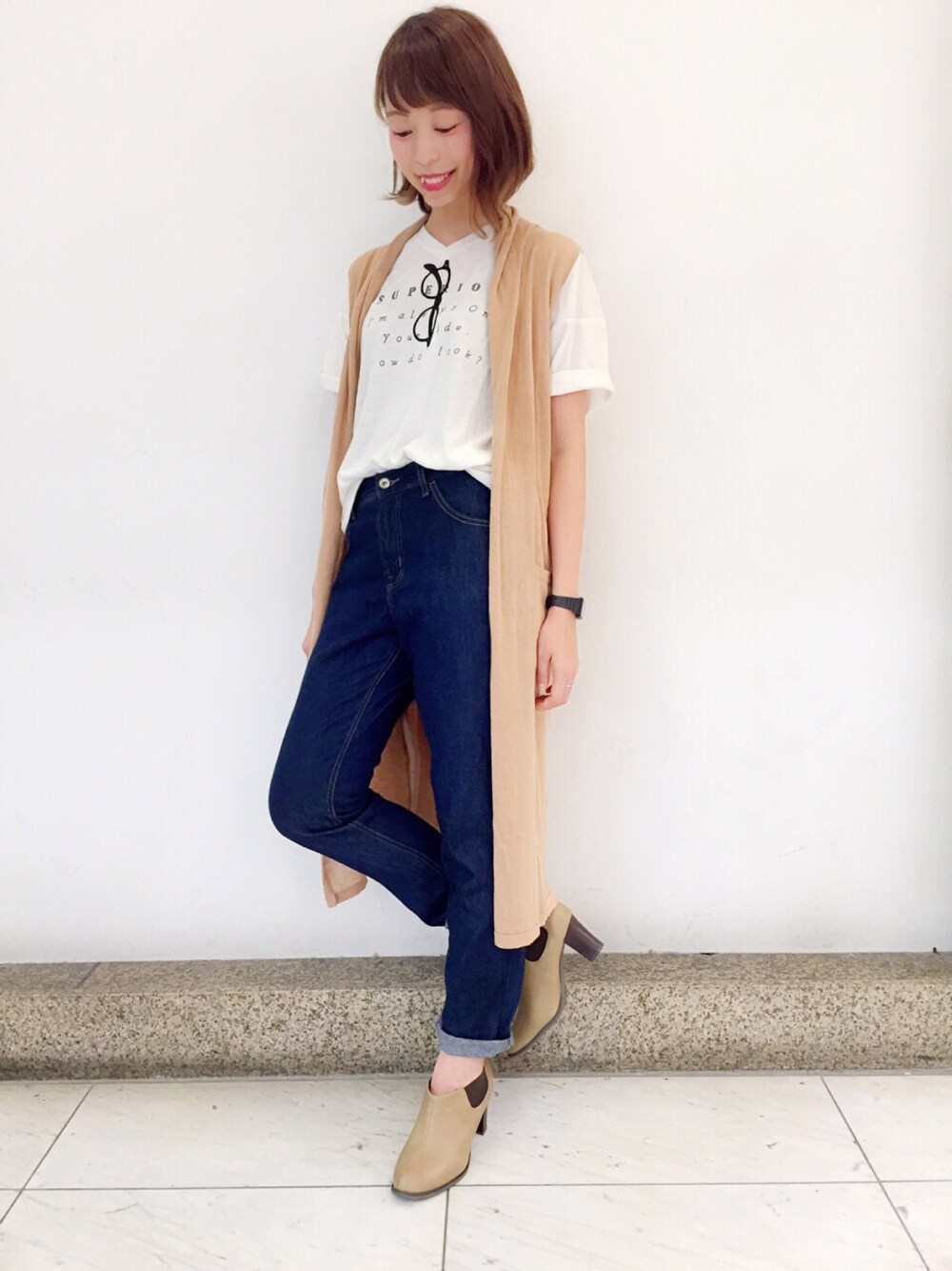 ロングジレ × ロゴT ブーティ合わせでちょっと大人っぽく。