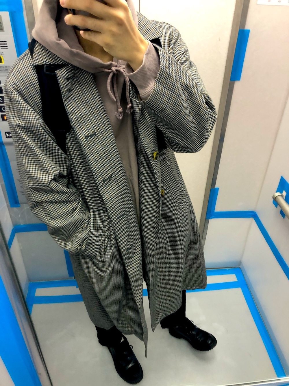 だんだんと寒くなってきた。今日はロングコート。今年は膝下がトレンドらしい。パーカーと合わせました!ウィムのパーカーはやはり良き。