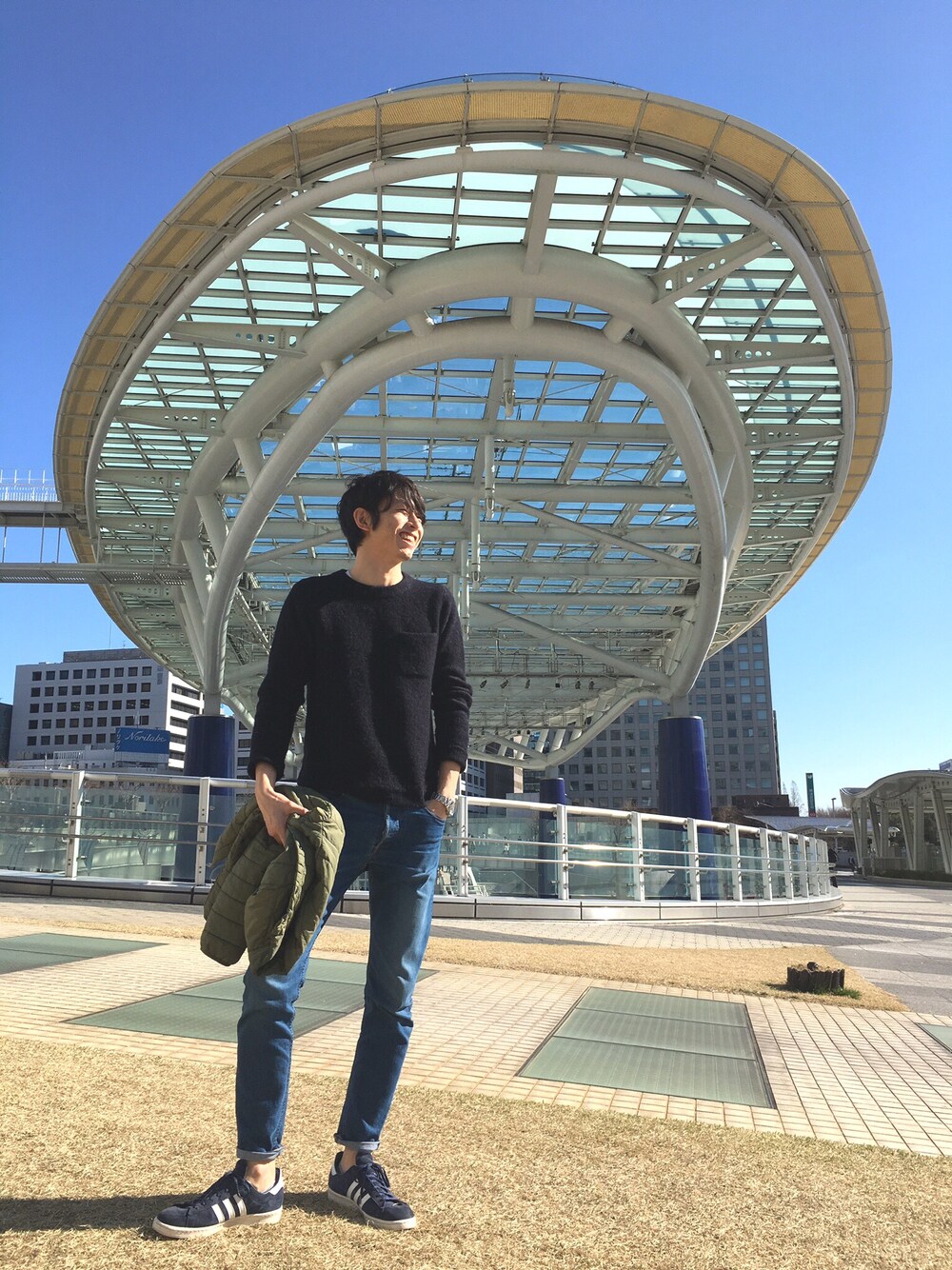 見ていただきありがとうございます! 天気良かったので外の建造物の前での一枚。 写真撮った後はすぐマスク。 花粉…きつ。