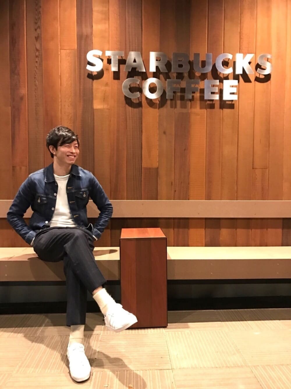 新しくスタバがオープンして立ち寄ったときのコーデです🙂 オープン仕立てで本当に綺麗で絵になる! ストロベリー&クッキーチーズケーキを試食させてもらいました! うまかったなー
