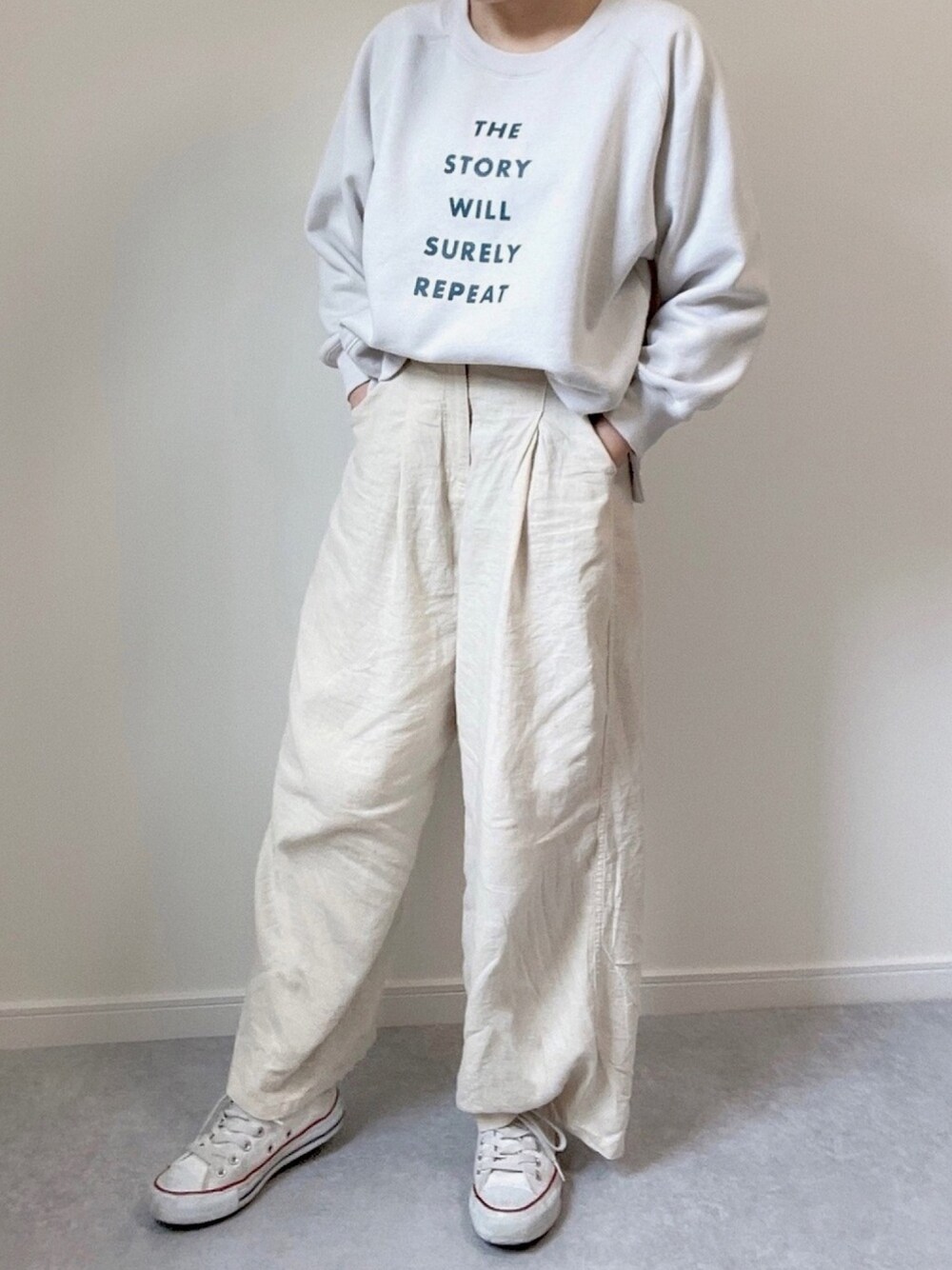 yuki(KBF ピオレ姫路)のスラックス「WEGO/【セットアップ対応商品】リネンブレンドワイドパンツ」を使ったコーディネート