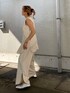 テロンとした 柔らか素材の セットアップ🥑 もちろん別々で楽しめるので コーデの幅が広がりそう🫶 155cmですが ウエストを結構上に上げて ハイウエストで履いております👍