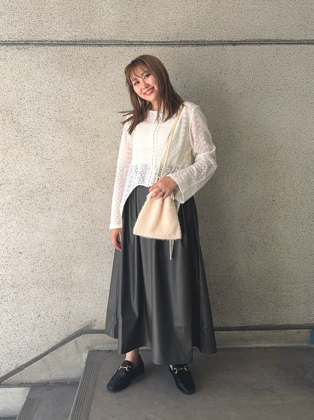 yuki(KBF ピオレ姫路)のスカート「ウォッシャブルフェイクレザースカート」を使ったコーディネート