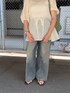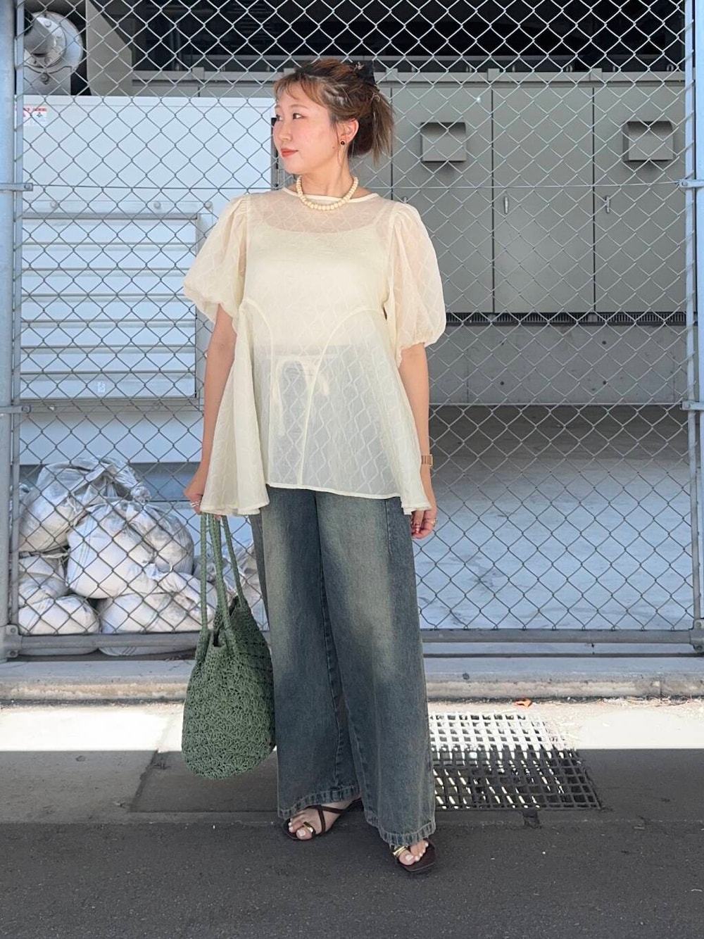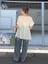 シアーのトップスは涼しげで 丈もちょうどいい長さ! このデニムは 骨ストさんにもおすすめで 形も長さも好き♡