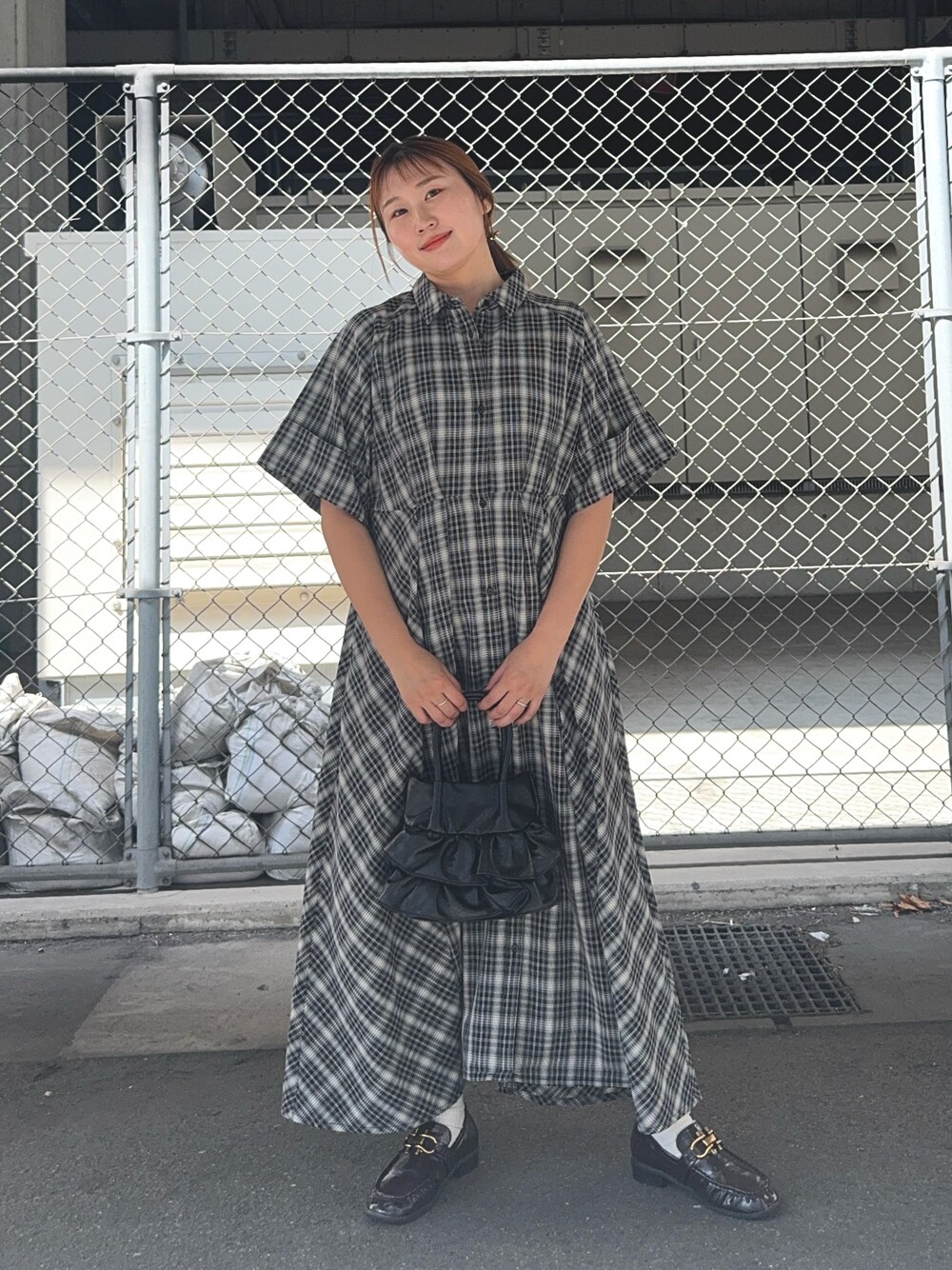 一枚でゆるっと楽ちんワンピース! ビッグシルエットだから ちょっとカジュアルな感じで着れます👗 フリルのバッグは 合皮で高見え!