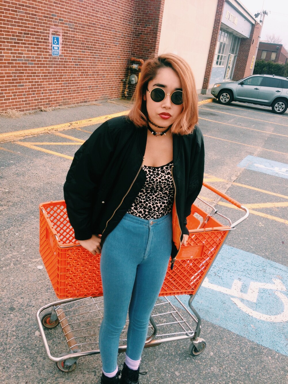 ハイウエストデニム×ヒョウ柄キャミにMA-1がお気に入り^^