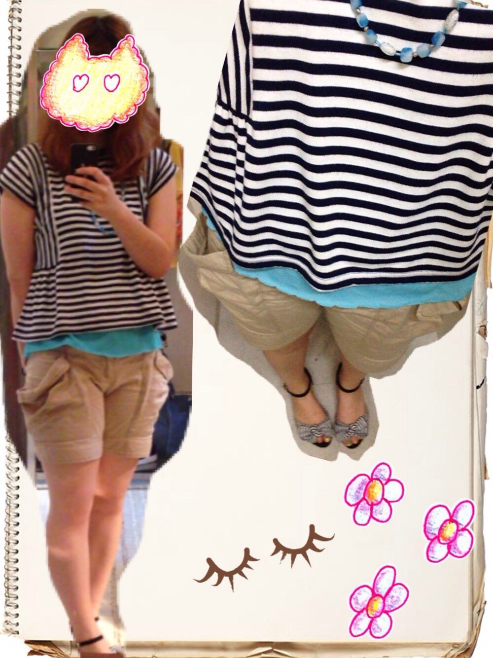 今日からお仕事先のショップは 一部先行値下げでものによっては最終価格になってるものも〜 台風一過でよく晴れてたから銀座には人が沢山(^ω^) お陰様で忙しく店内駆け回っていました…(疲れた) 今日はクロップドトップスをあえてパンツで合わせましたー 中に着るインナーで遊んでみました🎶 去年、カルフォルニアで激安で買った切りっぱなし、珍素材。 クロップドトップスはエヌファーストというメーカーさんのもので、ボーダーとストライプの両方を上手く使った柄で 視覚効果を出してくれてやや着痩せ効果アリ◎ 今日の暑さに便乗した すんごい夏らしいコーデの1日でした〜