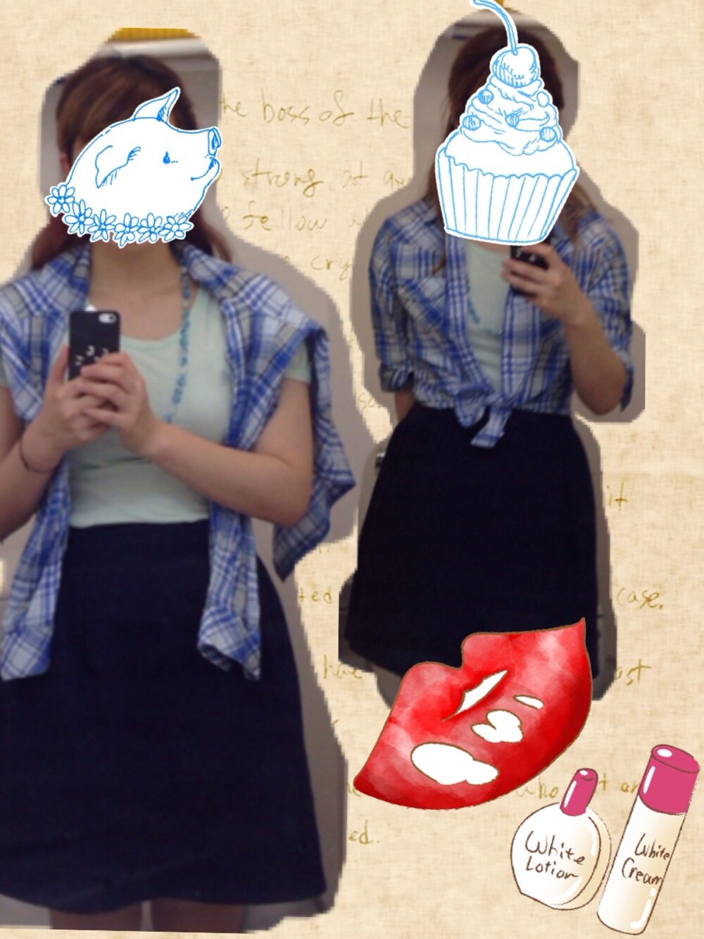 今日はアーバンクルーズさんのスカートをメインにコーデをしました! スカート自体、形がややAラインになっていてとても綺麗でオフィス使いにもってこい! レース刺繍がすごく上品です❤︎ フィットタイプのパフスリーブTシャツと チェックシャツで合わせて カッチリしすぎない抜け感を… 基本はチェックシャツをプロデューサー巻きにしてきてました 肌寒いときはシャツを羽織って前結びにすると大人カジュアルな感じに〜 夏は青い服が多くなってくる、、 もっと色使いたいよー( ´Д`)y━・~~