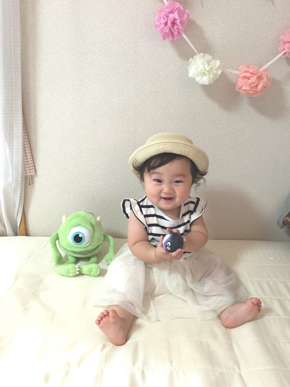 最初黒のチュールスカートに したんだけど…あつぼったくて お姉ちゃんの白の借りました☺️ 今日はご機嫌❤️ でも暑すぎて スカートは写真撮ったら 脱がせました😂