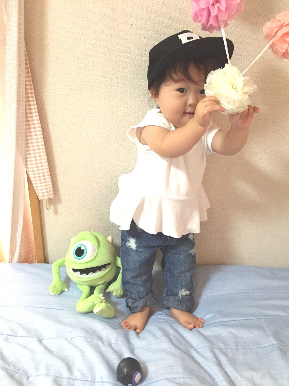 ボーイッシュに😚 でもプティのキャミ付きの Tシャツのフリフリで ちょっとかわいさも入れて❤️ 昨日は七夕⭐️ お姉ちゃんが幼稚園から 持ち帰ってきた飾りを 飾り付けしました😚
