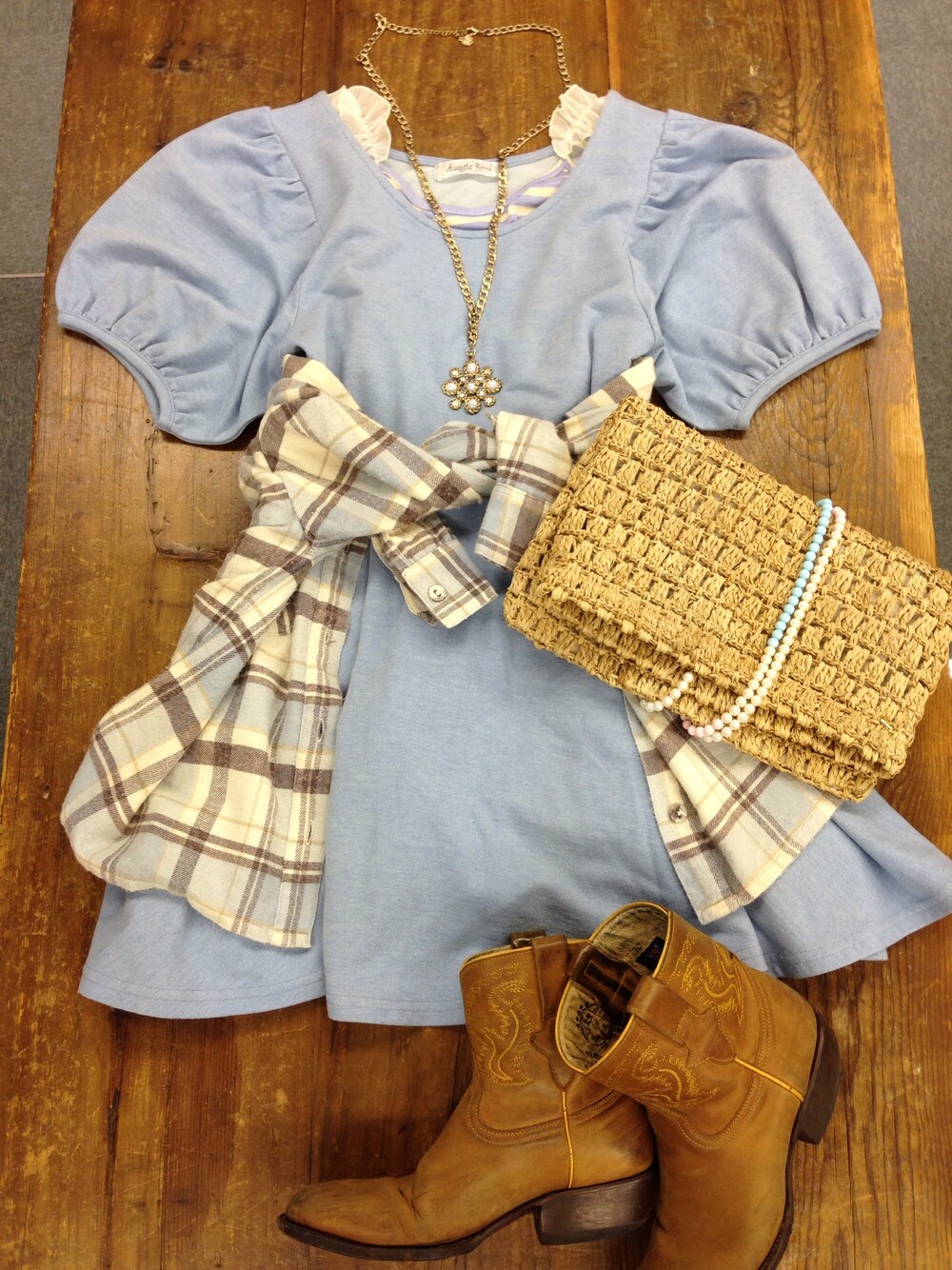 こまちのワンピース「カットデニムサーキュラーワンピース」を使ったコーディネート