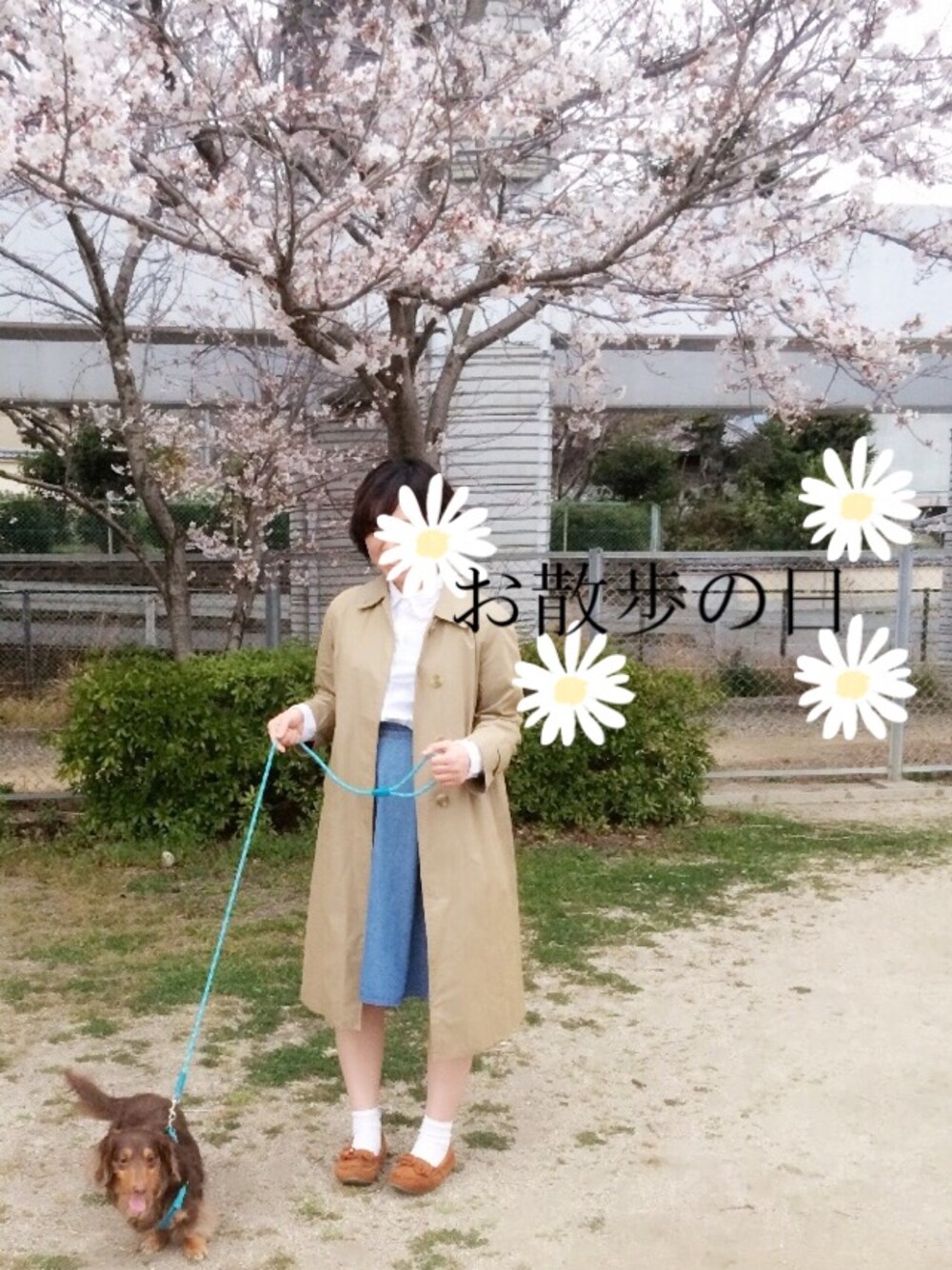 お母さんのお下がりのアウター。 母が昔来ていたもの古着みたいで🙆 桜も咲いてお散歩日和。🌸