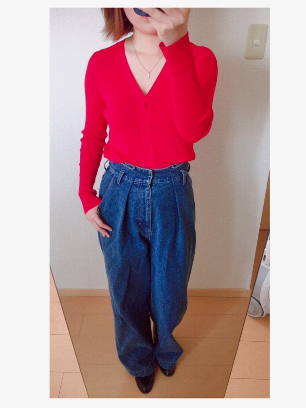 アイテム少なめでシンプルカジュアルコーデ レッドのトップスを活かしたかったから、シンプルに合わせました!