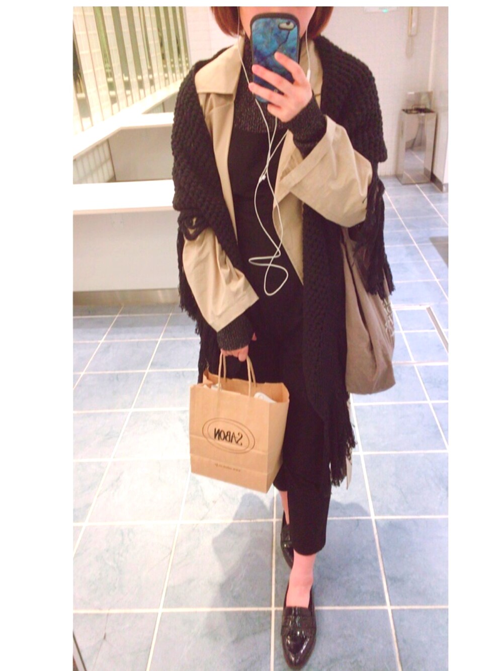 今日はsnidelづくし❤️ 黒のオールインワンをポイントにしたかったのに、可愛いトレンチとストールの主張激しめ💦 全部万能アイテム!!