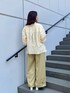 ワッシャー加工の施されたシャツと同系色のパンツでワントーンコーデに。 軽い質感なので、夏に羽織としても重くなりすぎることなく着れます。
