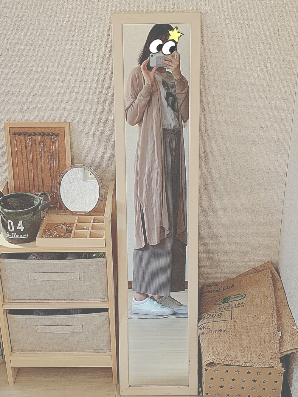てろてろしたこのリブパンツは履き心地良き🙆♀️ だけど下半身のボディラインを拾いまくるので(笑)隠すものは必須です