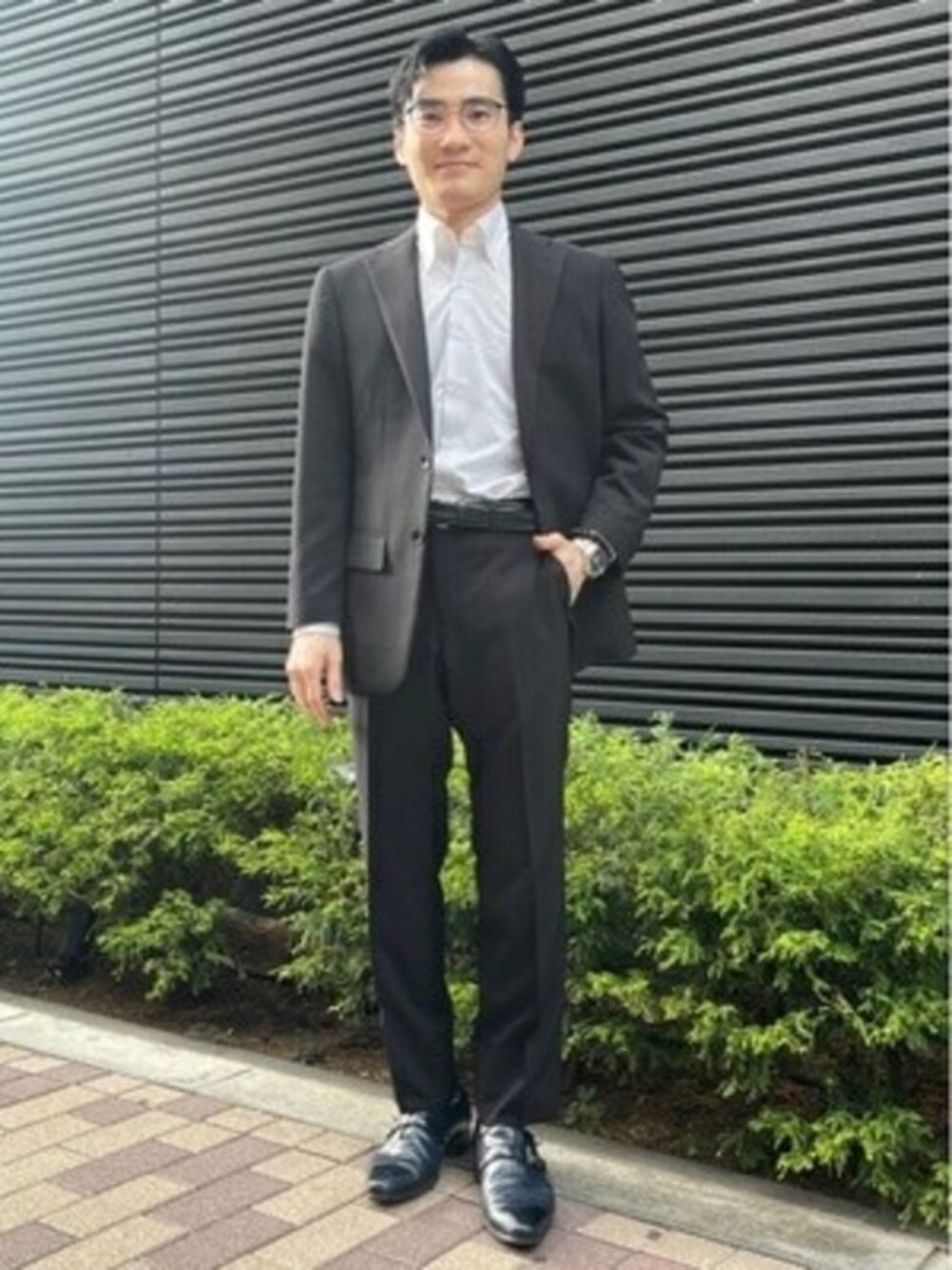 0493psfaのスーツセット「【上下洗える】WEB限定セットアップスーツ 4WAYストレッチ ストライプ ブラック」を使ったコーディネート