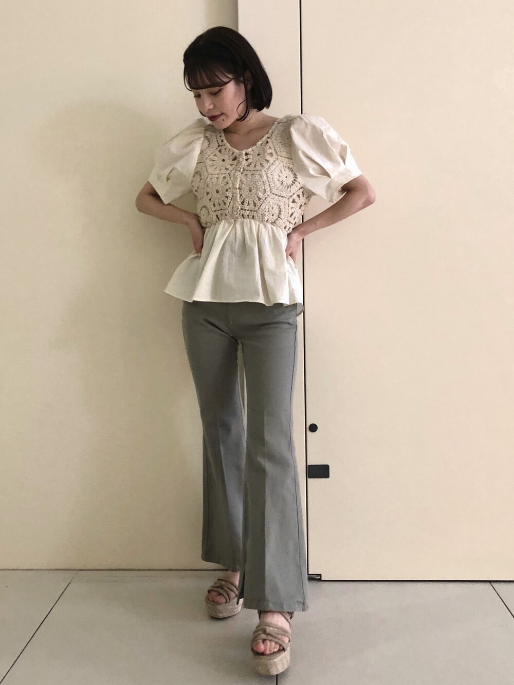 YUURI(FREE'S MARTルクア大阪)のシャツ/ブラウス「前後2Wayレースドッキングペプラムブラウス」を使ったコーディネート