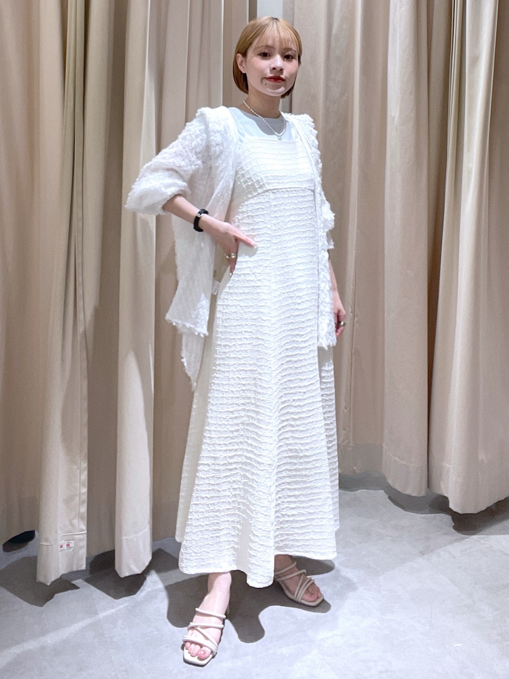 YUURI(FREE'S MARTルクア大阪)のワンピース「【3サイズ展開XS-M】ぽこぽこチェックマーメイドキャミワンピース【低身長サイズ有】」を使ったコーディネート