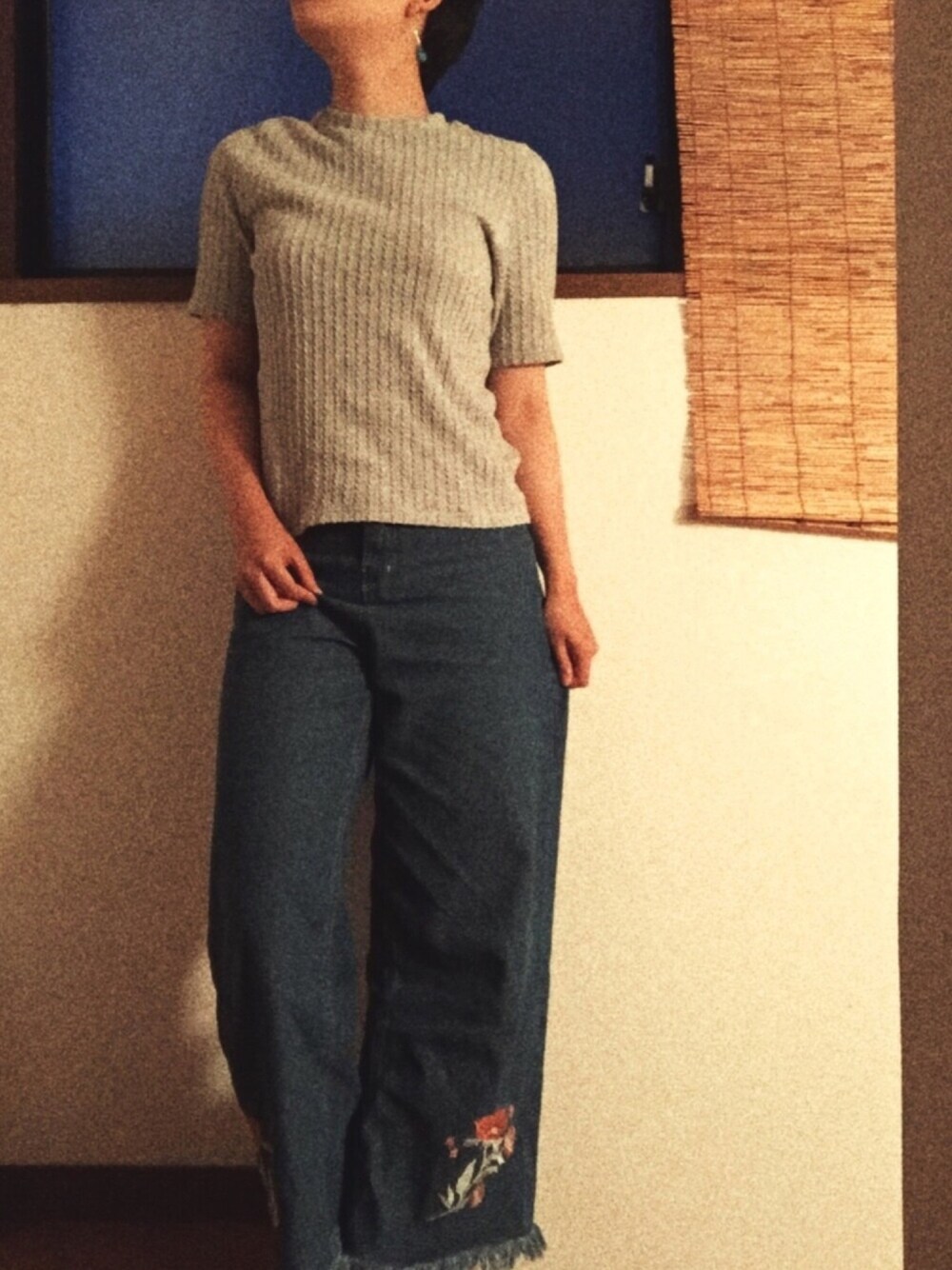 サマーニット?っていうの?これとってもいい。 寒くもなく暑くもなく丁度いい、秋のはじめにも着れそう(´∀`) そしてこのワイドパンツもよい。 何にでも合うし、寒くないし、足見せなくて済むし、流行りだし…一石何鳥ですか?ってぐらい。 相変わらずポーズは適当