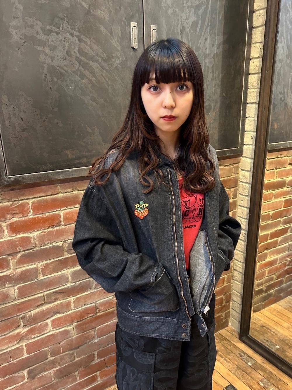 楓(HYSTERIC GLAMOURルクア大阪店)のブルゾン「POP BERRY刺繍 デニムレーシングジャケット」を使ったコーディネート