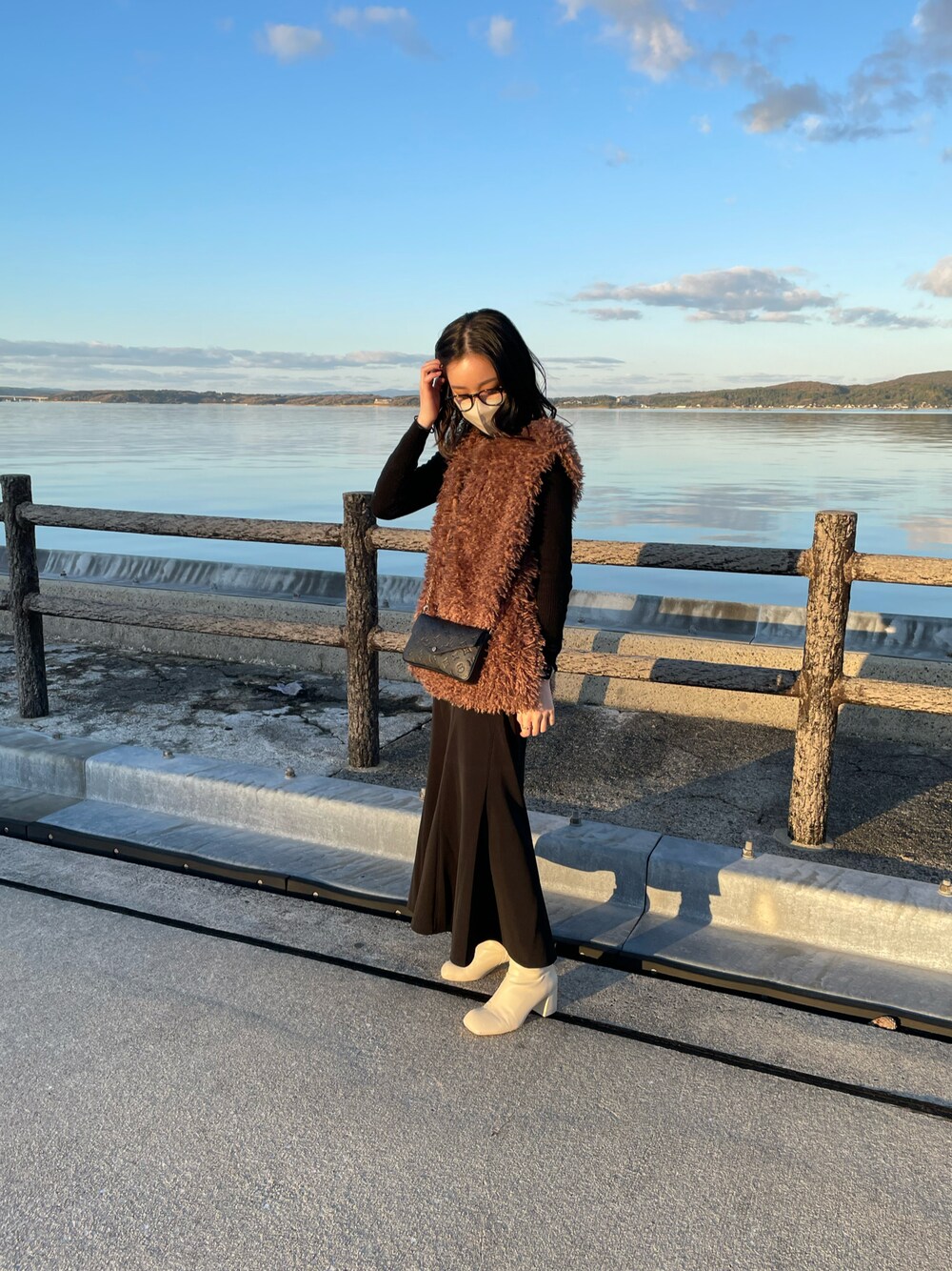 mysticコーデ🤎🖤🤍 日差しが暖かい日で海沿いでもポカポカでした!