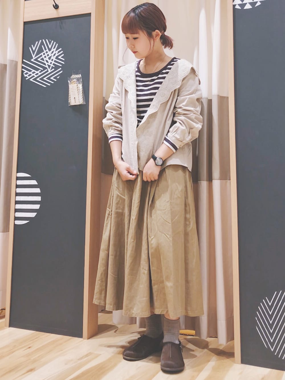 イシカワ リホ ◎のシャツ/ブラウス「スカラップフードブラウス」を使ったコーディネート