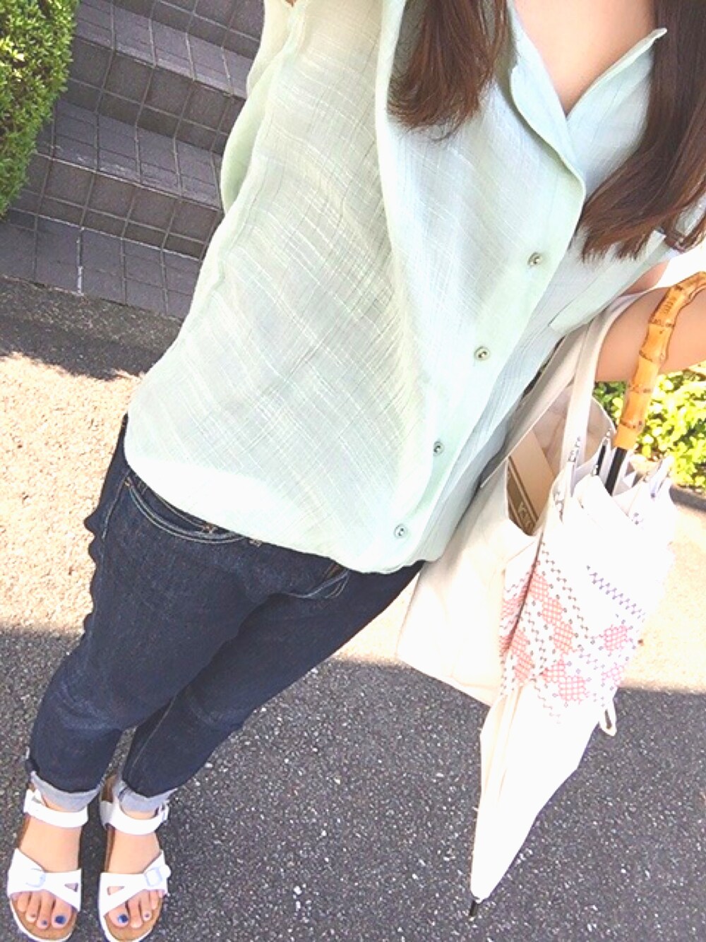 暑い〜ので、涼しげコーデ🌟 薄いグリーンお気に入り〜🌟