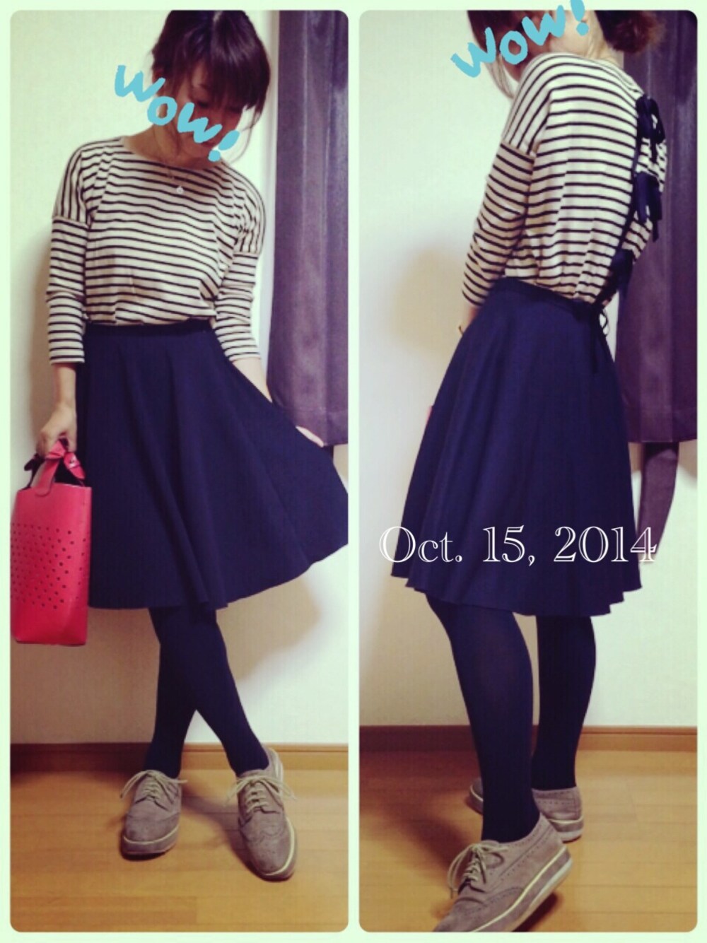 おNEWのお気に入りなこのボーダーを、 スカートにinしてみました⑅◡̈* ボーダーにリボンとか、、、ずるい(´・_・`)