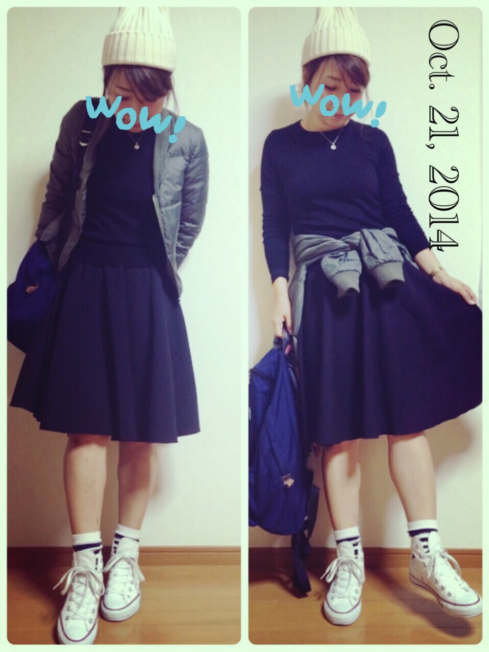 このMA-1(に見えるモノ)は。。。 ミリタリーコートの中の、取り外し可能な中綿ブルゾン的なモノです。 これMA-1みたいに使えるジャン!このコートお得ジャン!と思って去年購入😎👍 そして、ヘビロテすぎるいつものUNIQLO黒ニットと(ちゃんと洗ってるよ♥️) いつものコンバース、 いつもの(術後の患者になってないか心配な)白ニットキャップ。 で、まだ昼間は暑かったりもするから、、 また冷やし中華風に MA-1の腰巻きも、はじめました。 (今年から)