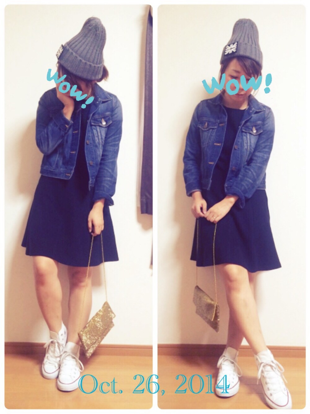 UNIQLOのワンピースは期間限定で1,490円でGET‼️ チェーンbagはパーティ用だけど、カジュアルな日に合わせるのもいいじゃないかと、引っ張り出してみました(´◡͐`)