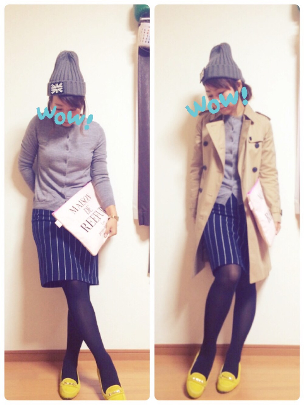 カーディガンはいつもお世話になっているUNIQLO♡ 今日は前を閉めてニット風に着ました。
