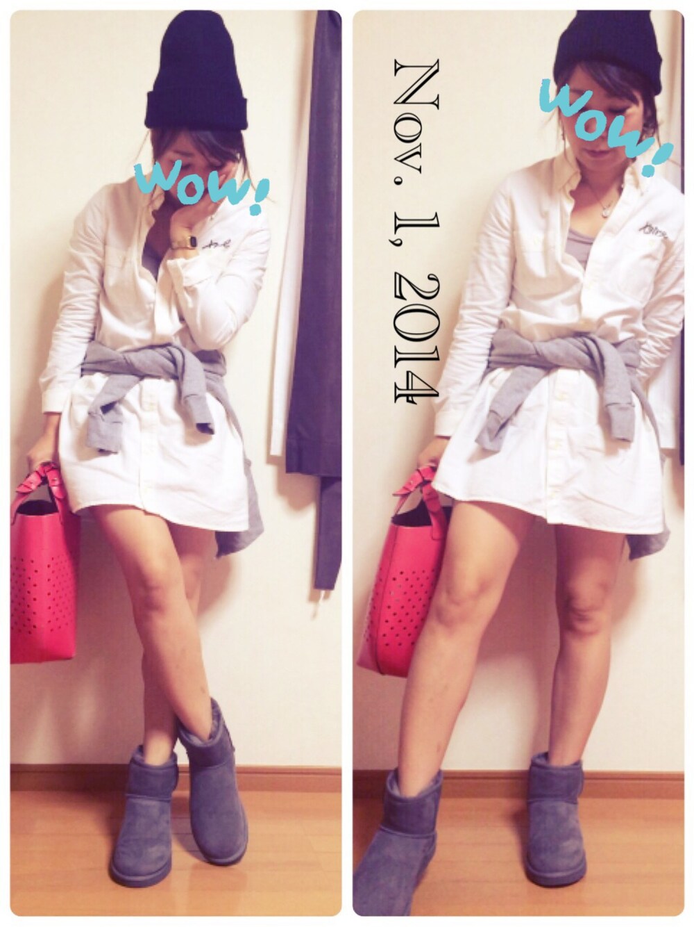 彼氏のシャツ借りた風ワンピース♡ 堂々と着てるインナー、ヒートテック。笑
