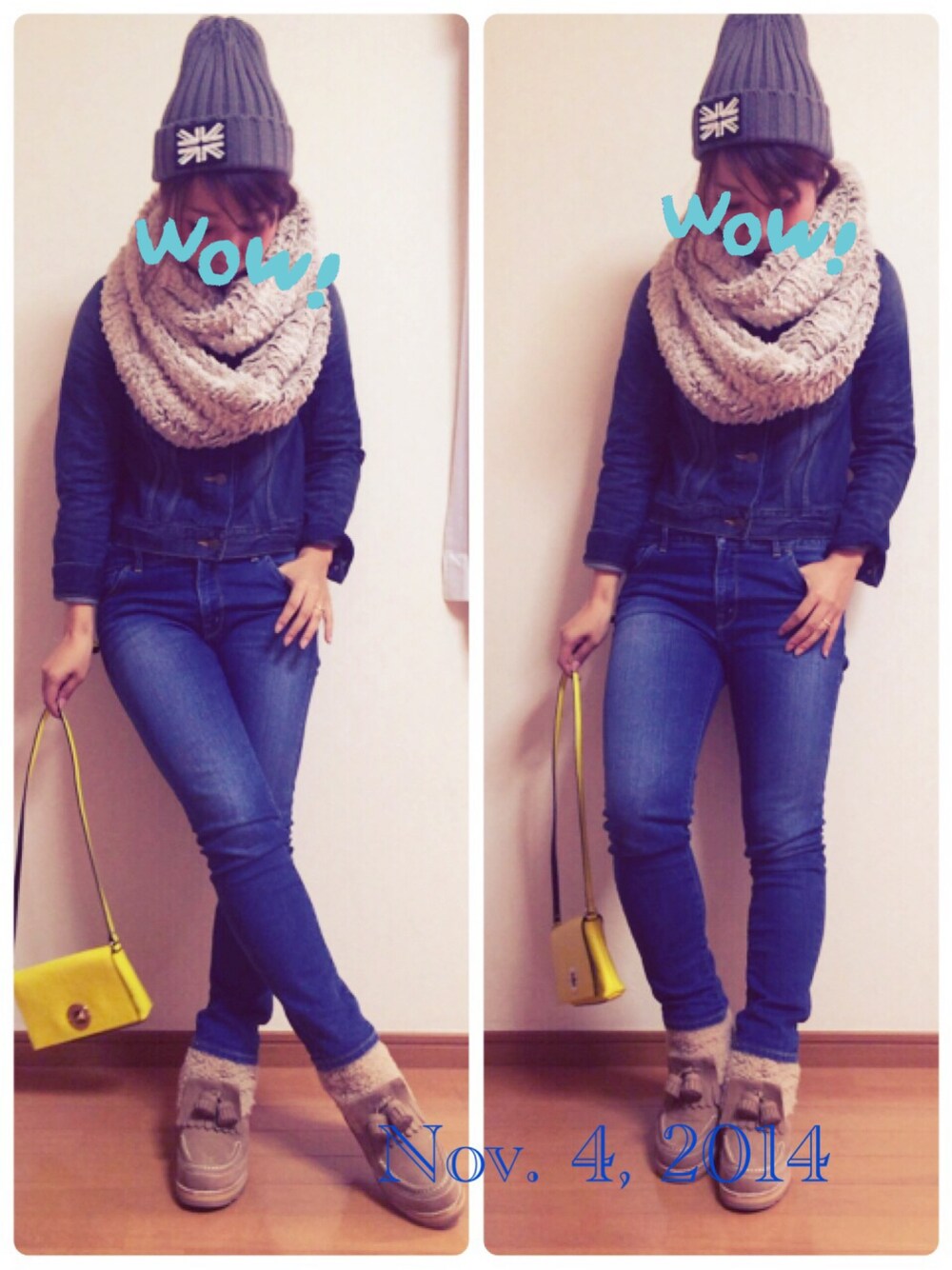 Gジャンのフロント全部締めてみた。 デニムオンデニムいつも、 かわいいとダサいの境界線スレスレな気がして ちょっとドキドキ笑 一歩間違ったらマー坊じゃん?