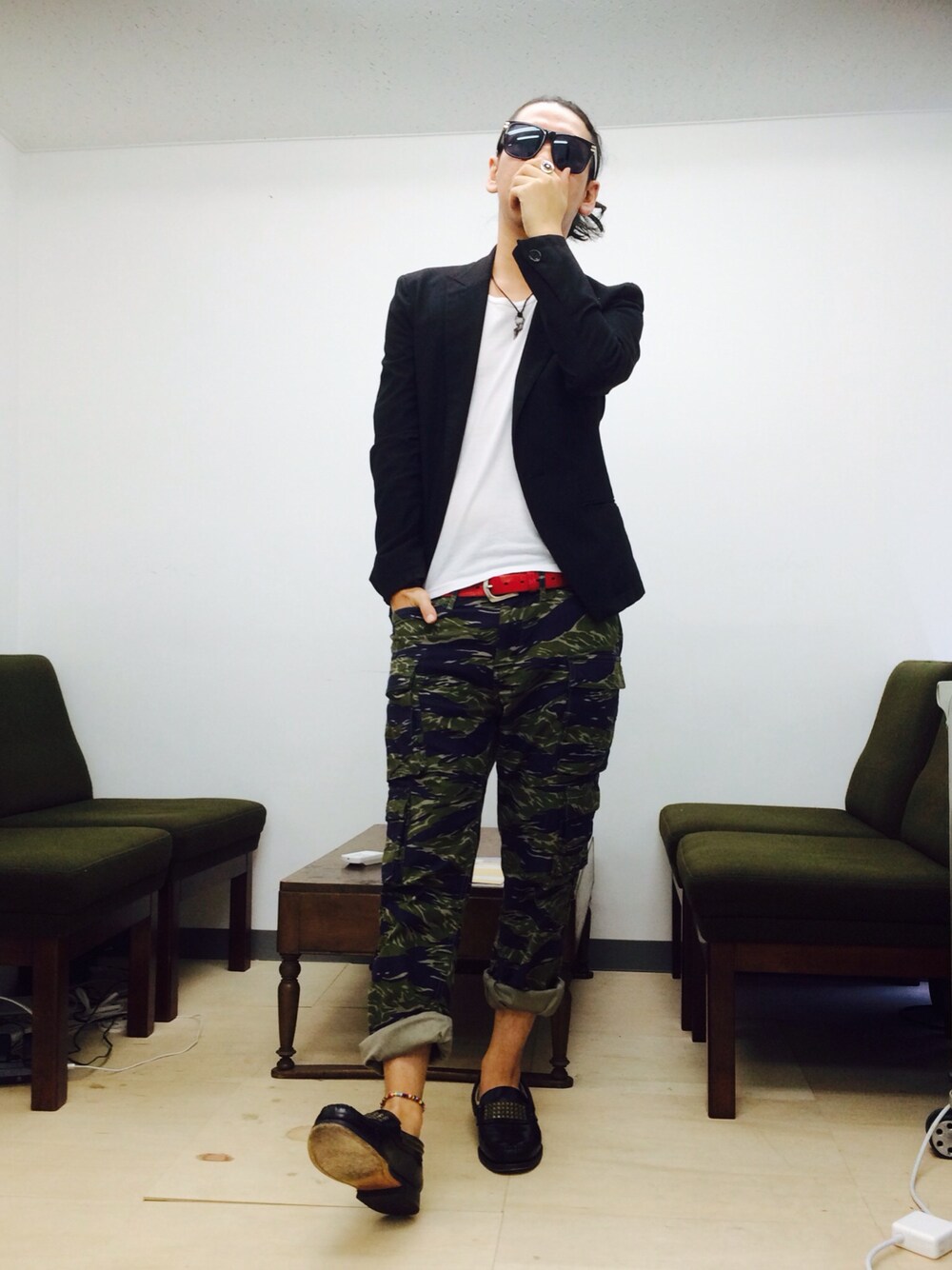 415のスラックス「カモ柄ストレッチスラックスBS」を使ったコーディネート