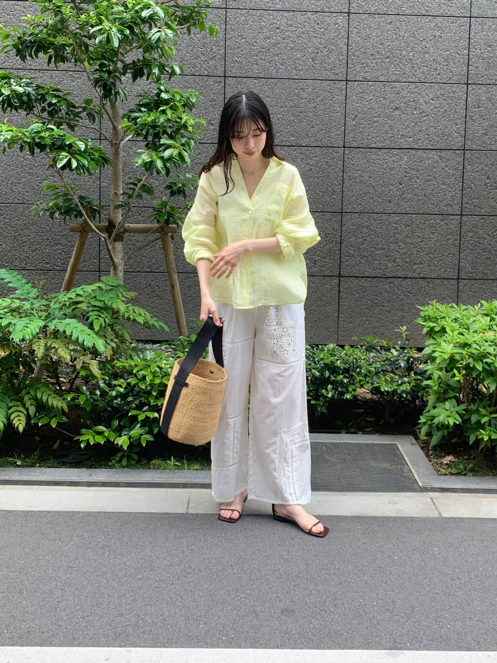 暑くなると着たくなるリネンシャツ!何枚あっても嬉しい万能アイテムです レモン風な優しいイエローカラーを着用してみました!165cmでしっかりとお尻が隠れる丈感で、前後差のある長さでどの角度から見てもすっきりとした印象に◎ 合わせたパンツは、オリジナルの刺繍柄を施したイージーパンツ 楽チンな上にワンポイント刺繍があることでお洒落さ倍増、涼しく着用できます◎