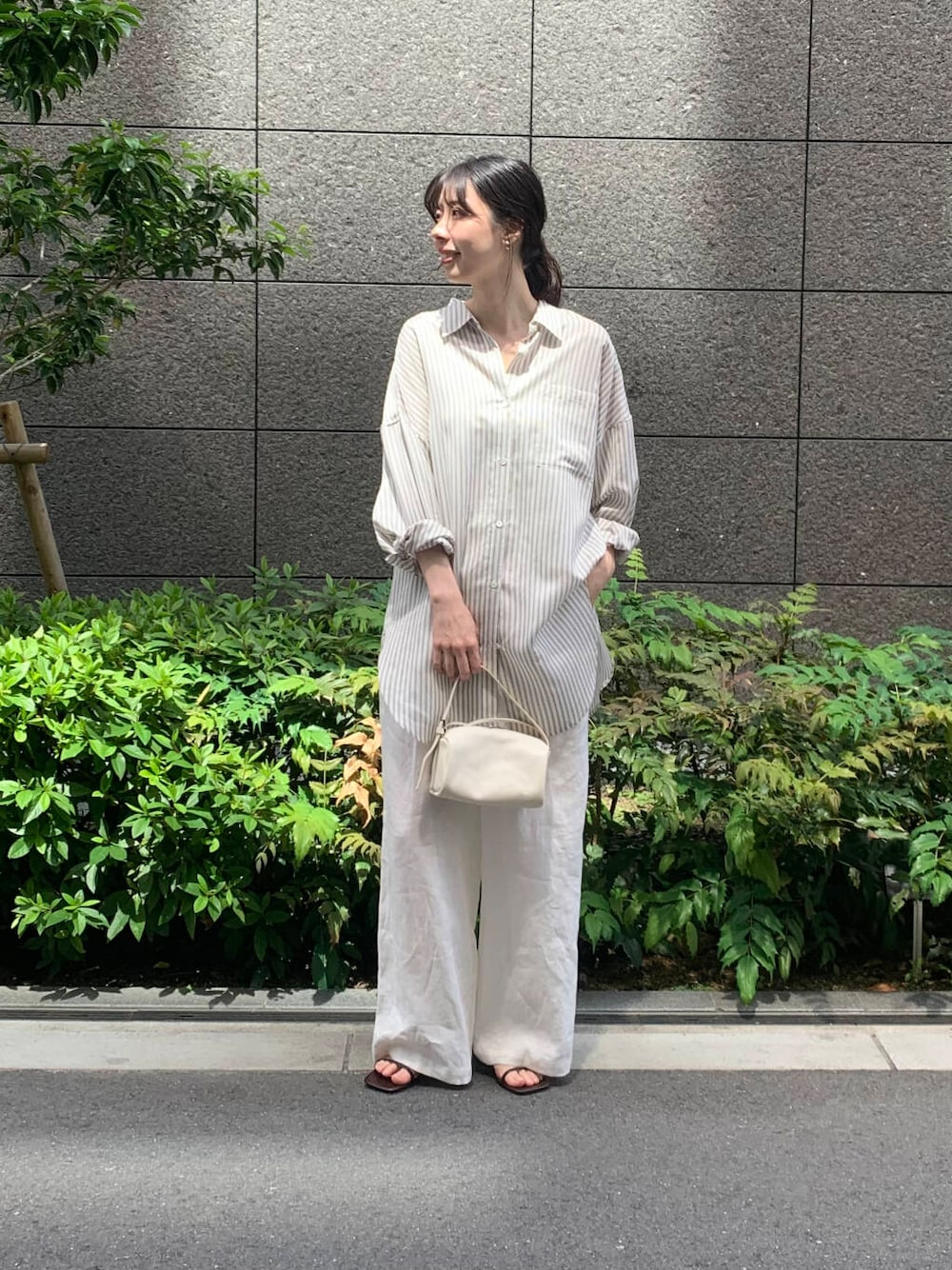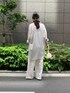 とても肌触りが良く、てろっとした素材感が体に沿うような印象で着心地のいいシャツです 体型カバーもできる長めの丈感です! リネン100%の爽やかなパンツ OFFは透けるので透けにくいインナーや長めのトップスと合わせるのがおすすめです ワイドシルエットでとても楽チンでした◎