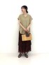 UネックとVネックの前後2WAY仕様のトップスは、フレンチスリーブで程よく二の腕が隠れます 体のラインを拾いにくくさらっとした質感の生地で夏場も快適に過ごせそうです◎ 165センチでお尻にかかる丈になります クリンクルのスカートと合わしてみました ウエストゴム仕様で着心地も良く、腰回りが強調される感じもなく履けました!