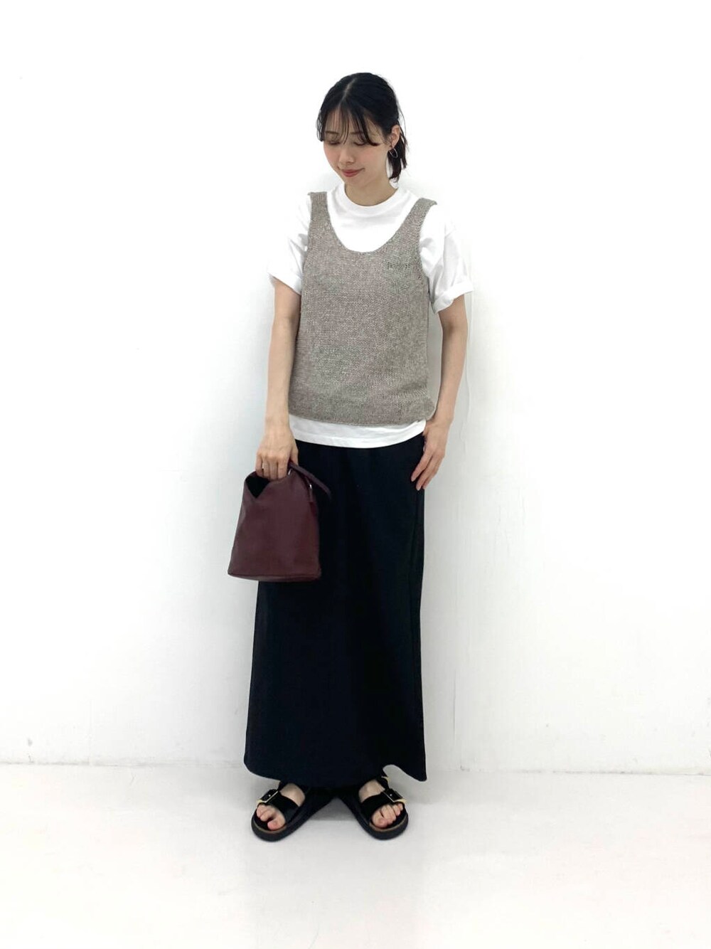 シンプルになりがちな夏コーデに合わせるだけで可愛いノースリーブニット ざっくりとした編地で存在感があり、タンクトップと合わせて着用するのも可愛いです◎ 合わせたスカートは165cm38サイズ着用で踝が隠れる丈感になります 程よく柔らかい生地と後ろスリットで足捌きもいいです