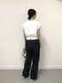 サテン生地のイージーパンツ ウエスト総ゴムで楽な着心地、シーズンレスでお使いいただけます◎ シルエットもとても綺麗です! WEB限定のトップスと合わしてみました