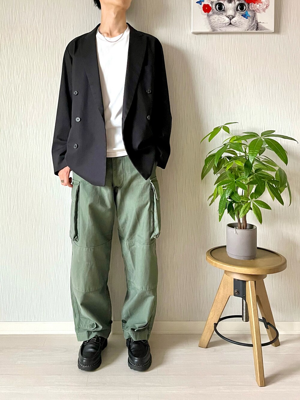 最近購入したカーゴパンツ。 長年履き込んだような独特の加工が男心をくすぐります。