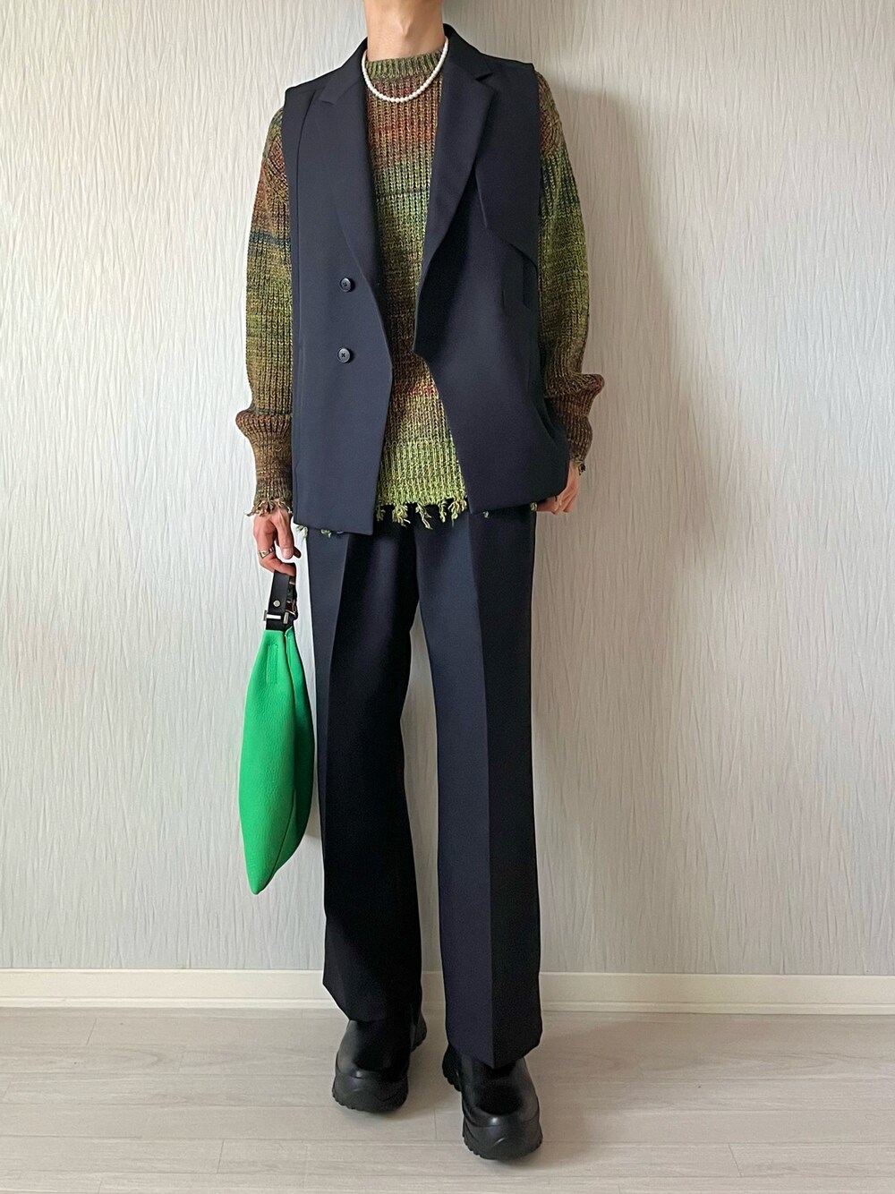 Nao-Nanのテーラードジャケット「カーブドエッジテーラードベスト」を使ったコーディネート