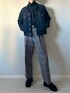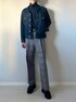 無骨なデニムジャケットをチェックパンツとタートルネックで知的な雰囲気に。