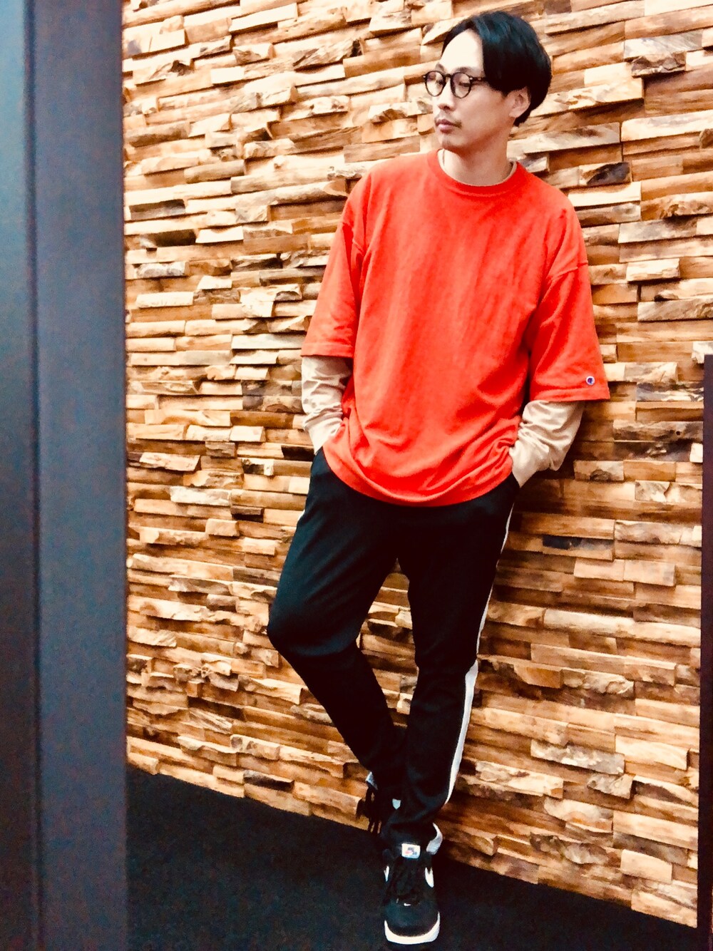 ワイドシルエットに重ね着。タイトなジャージパンツを合わせて台風なんて撃退です笑