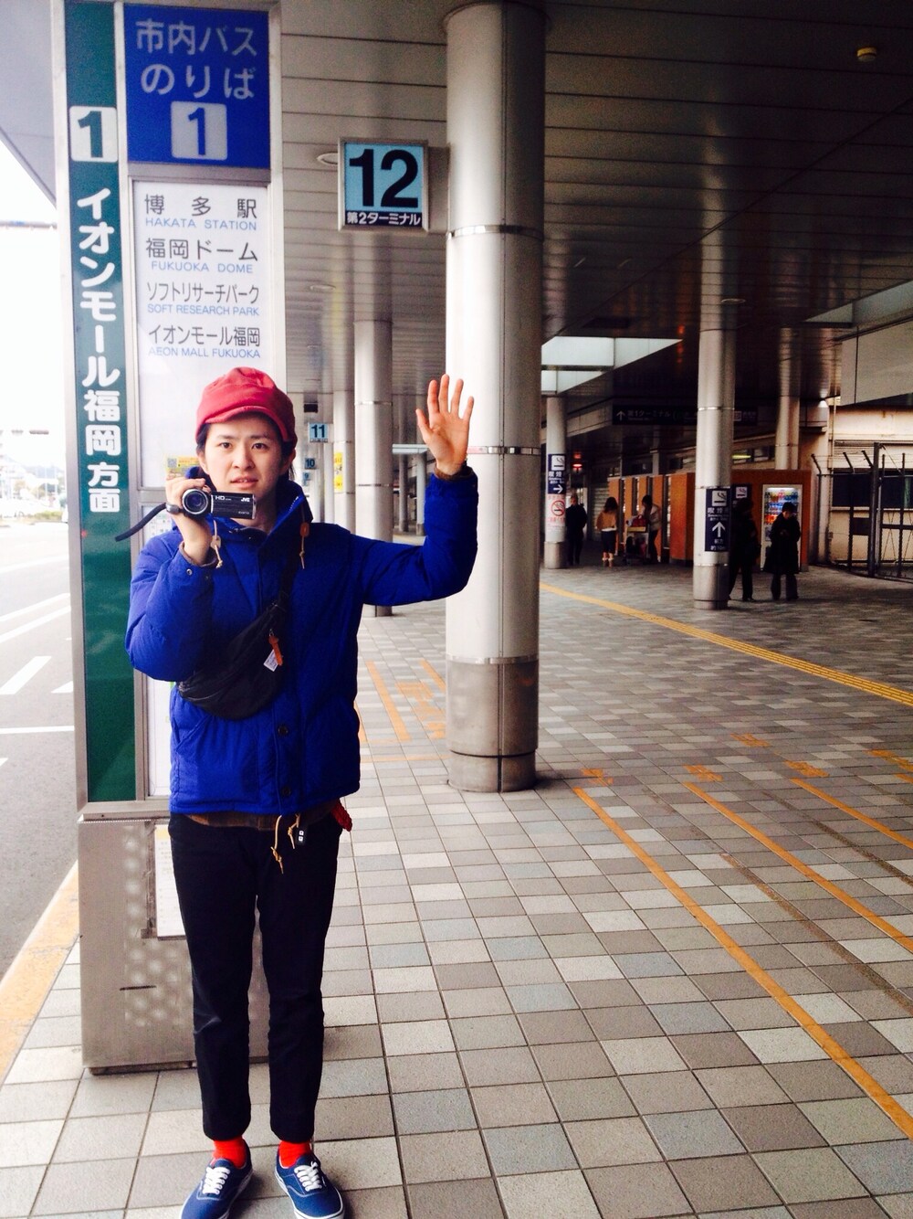 レッド系のキャップを着用したメンズの秋コーディネートの1枚目の写真