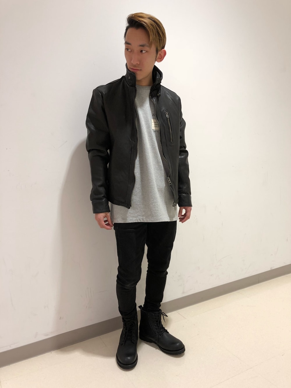 ライダースMサイズ着用 インナーLサイズ着用 シンプルなレザーを着こなしたい方にオススメです 2017.12.28 AVIREXワールドポーターズ横浜店STYLE