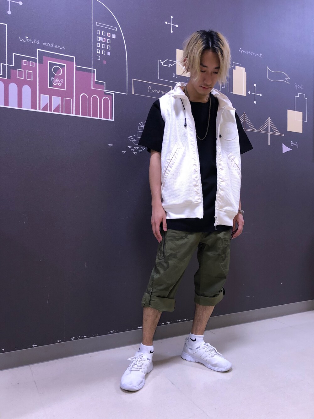シャツ、TシャツLサイズ着用 パンツMサイズ着用 ミリタリーとストリートのミックス! サイズ感を大きめにしています 2018.06.08 AVIREXワールドポーターズ横浜店STYLE
