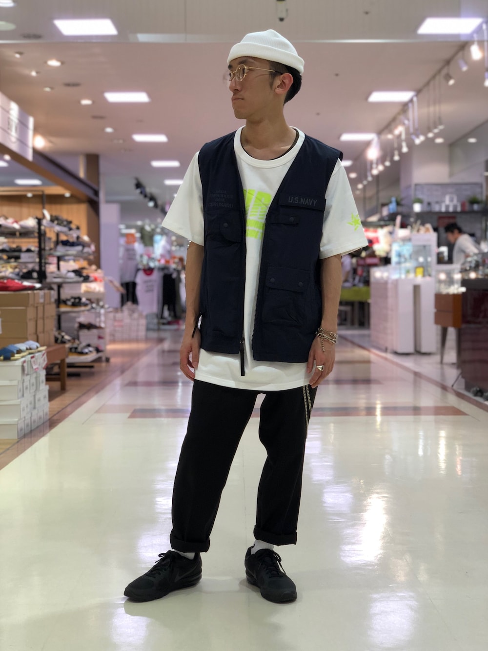 オーバーサイズの Tシャツにベストを合わしてストリートミックス 身長: 157cm 着用サイズ: TシャツXL、ベストL