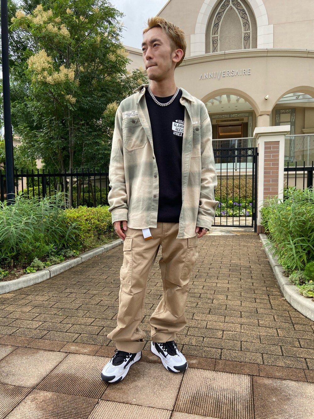 秋冬先取りコーデ! ちょっと肌寒い時にもおすすめ! 身長: 157cm 着用サイズ: シャツ/L インナー/M パンツ/S