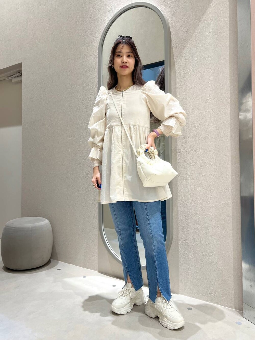 細見え効果抜群のブラウスです!前後2wayでご着用頂けます!あえてスニーカーと合わせるととってもかわいいo(^_^)o♡ もご覧頂けると嬉しいです!